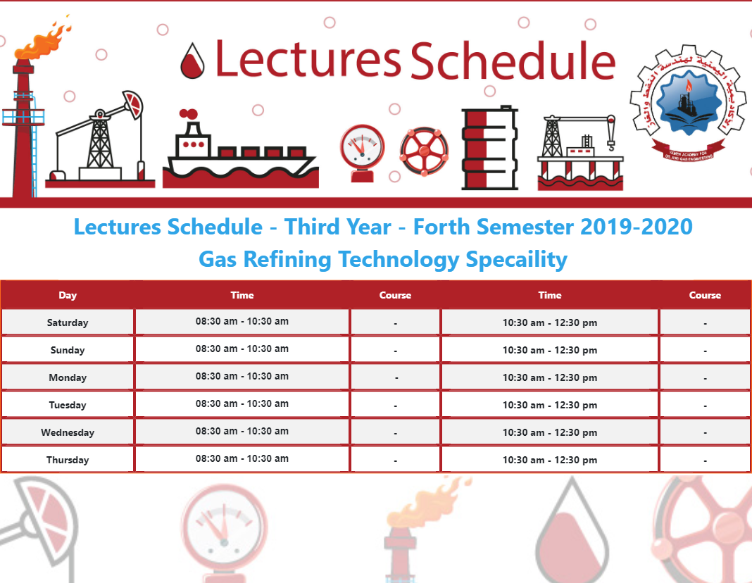 Lectures Schedule - Third Year - Forth Semester 2019-2020