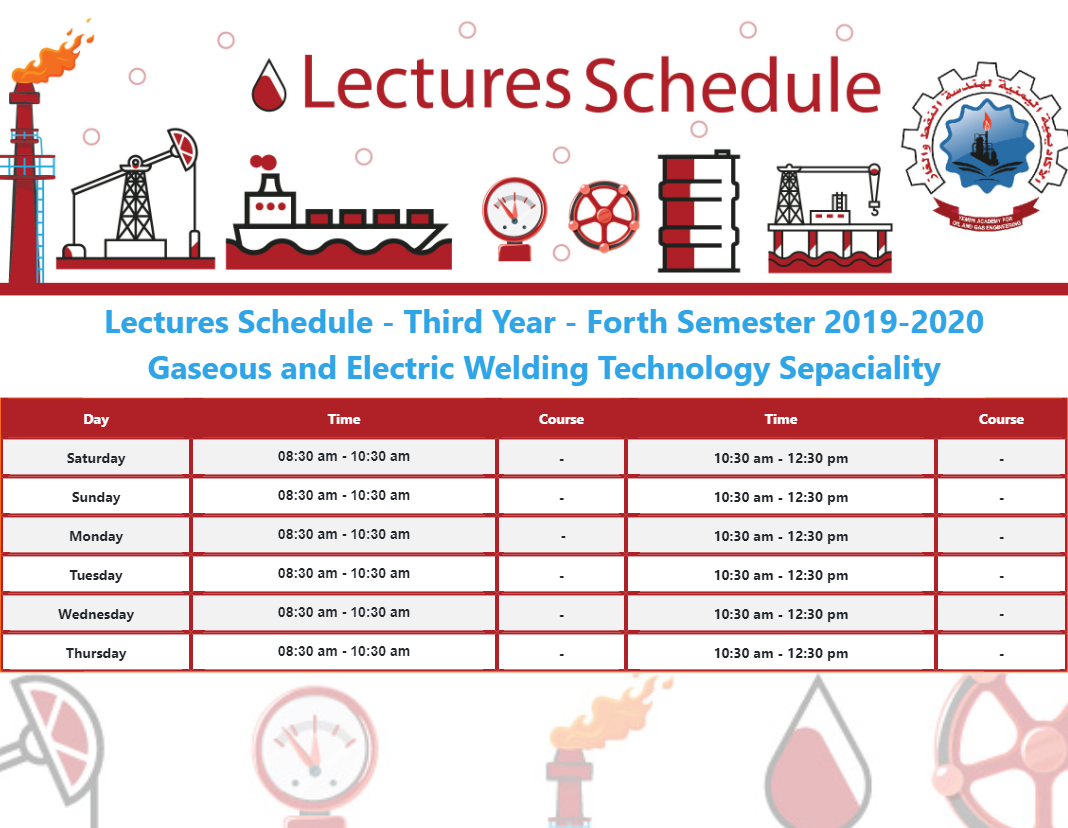 Lectures Schedule - Third Year - Forth Semester 2019-2020